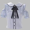 Blusa Cinzenta Jirai Kei com Laço e Folhos Manga Curta