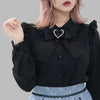 Blusa Gótica Preta com Gola de Renda e Coração Jirai Kei
