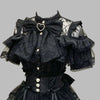 Blusa Gótica Preta de Renda com Laço e Cintura de Espartilho