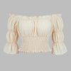 Blusa Lolita com Mangas Bufantes e Bainha Franzida Creme 6XL