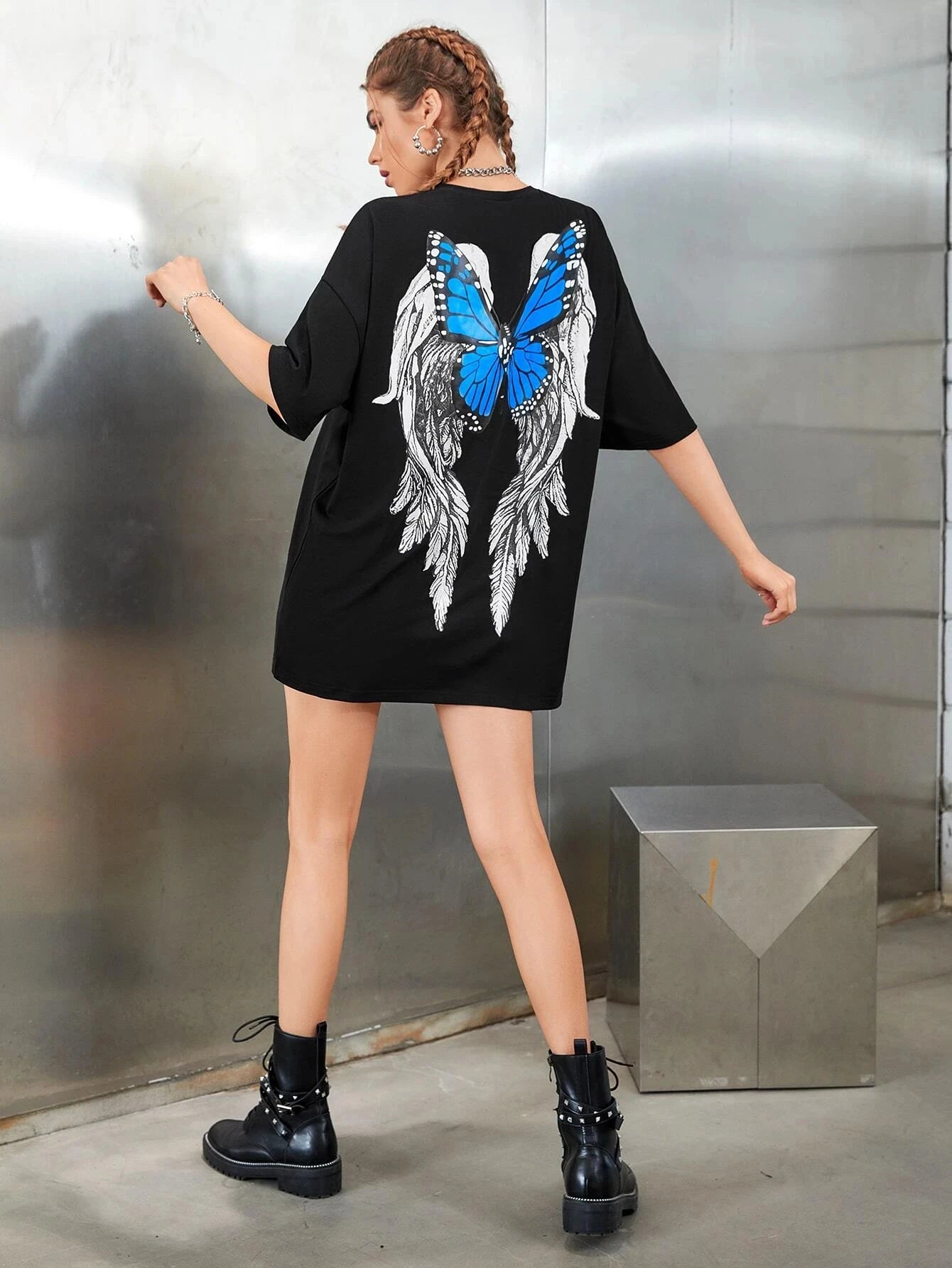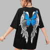 Blusa Oversize Feminina Azul com Asas de Borboleta Estilo Gothic Rock