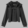 Blusa Preta Lolita Jirai Kei com Laço e Gola de Renda