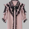 Blusa Rosa Lolita com Folhos e Renda Contrastante