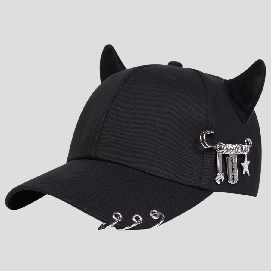 Boné Punk Preto com Chifres e Pendente Prateado