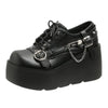 Botas Pretas Punk Rock com Correntes, Tachas e Plataforma Maciça