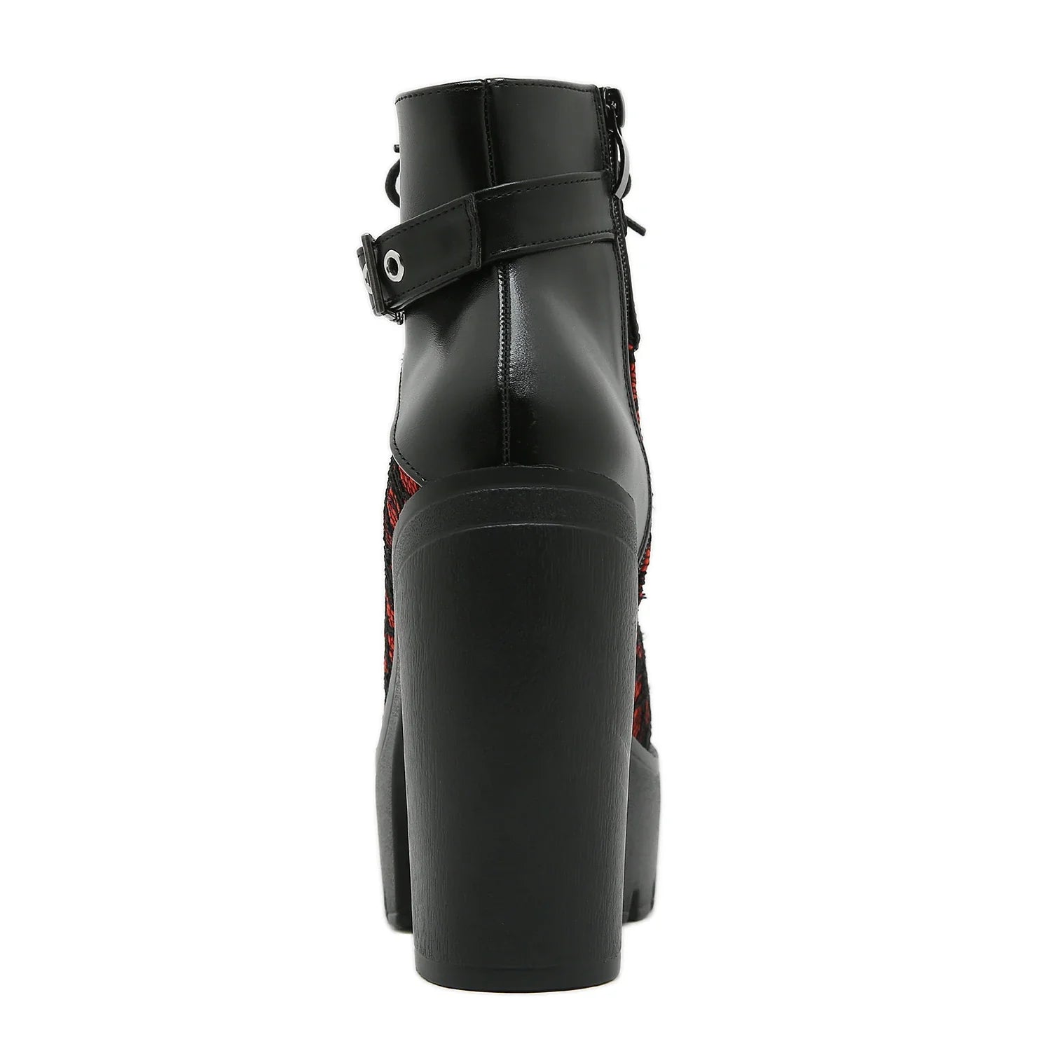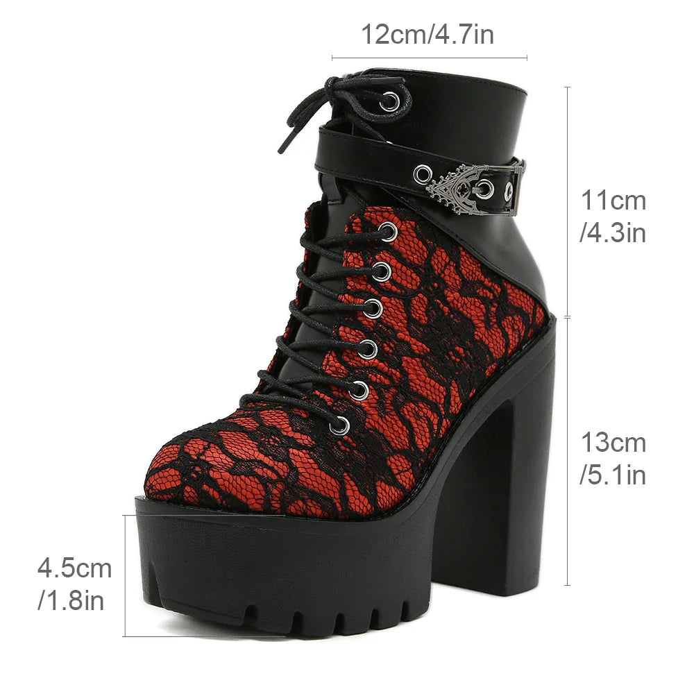 Botins Vermelhos de Salto Alto com Atacadores e Fivelas – Estilo Punk Rock