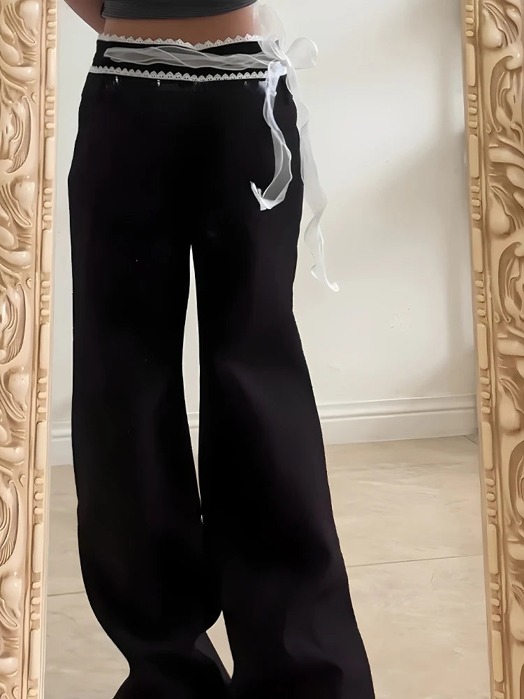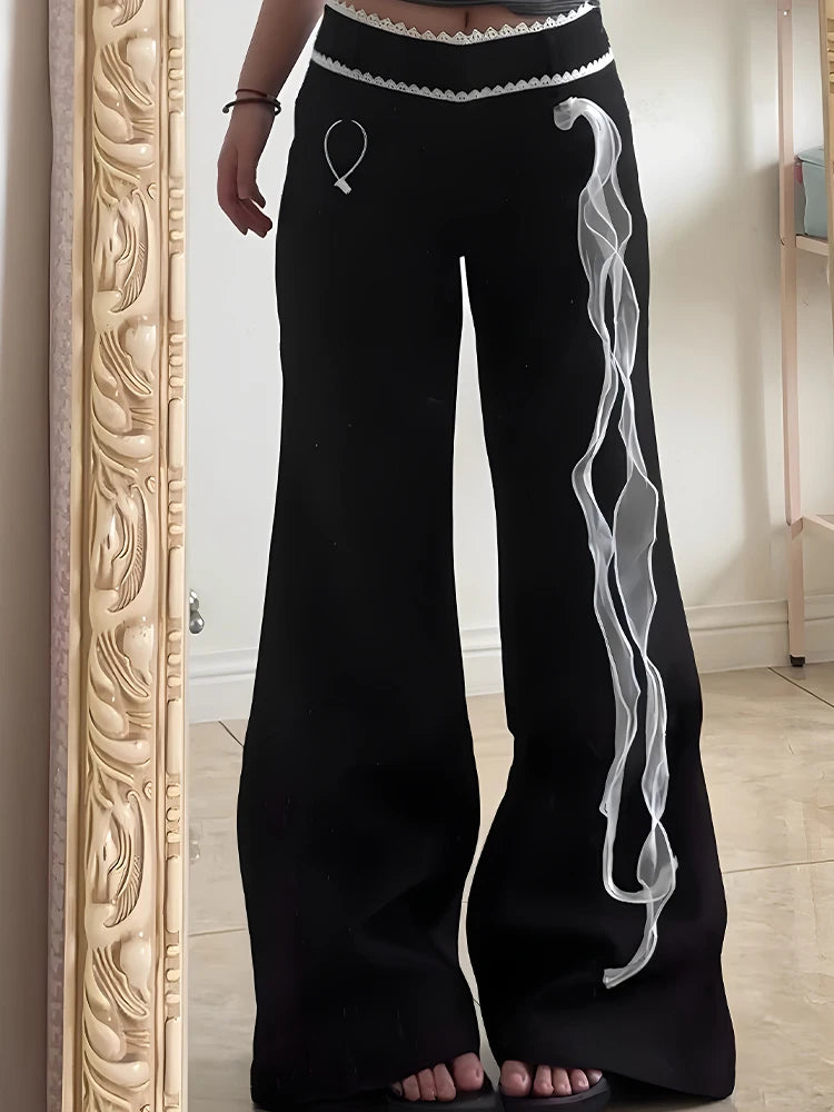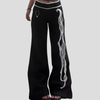 Calças Boca de Sino Estampado Fumado Punk Femininas