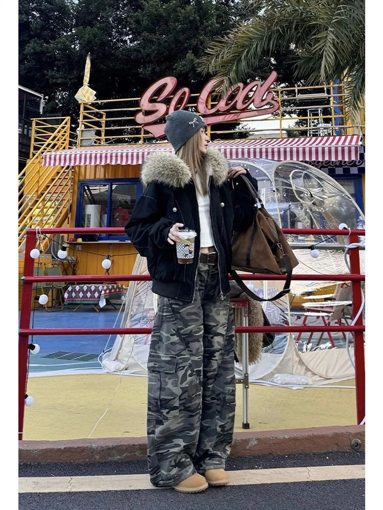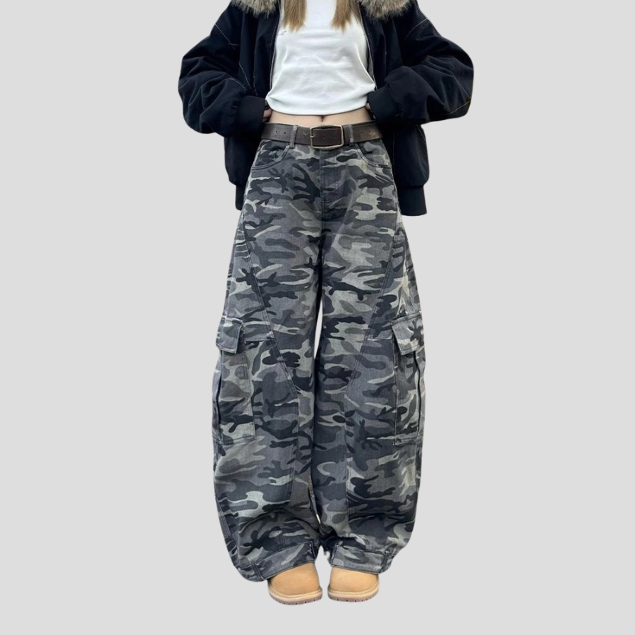 Calças Cargo Femininas Camufladas Militares com Bolsos Oversize