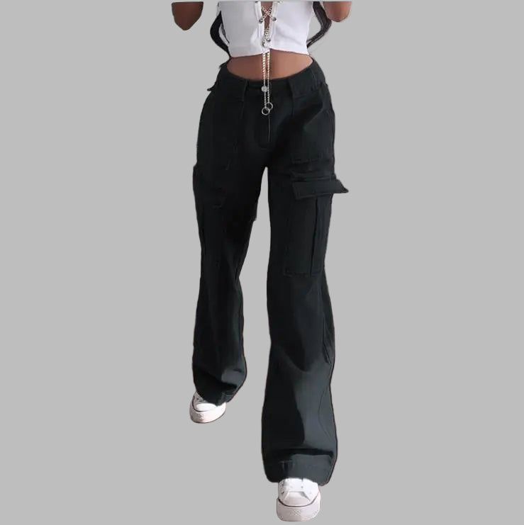 Calças Cargo Largas Rock com Bolsos Pretas