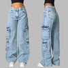 Calças Cargo Rock Claras com Bolsos Laterais de Ganga