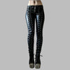 Calças de Couro Pretas Góticas Punk com Cordões Metal Rock