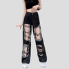 Calças Largas de Ganga Rasgadas Grunge Punk Femininas