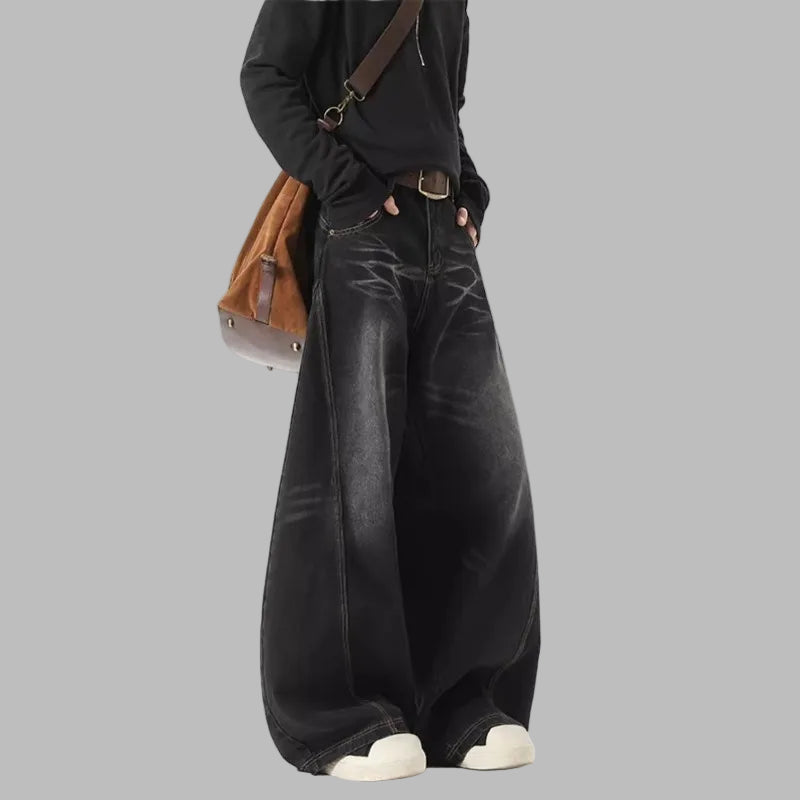 Calças de Ganga Pretas Baggy Largas Vintage Femininas Oversize Grunge