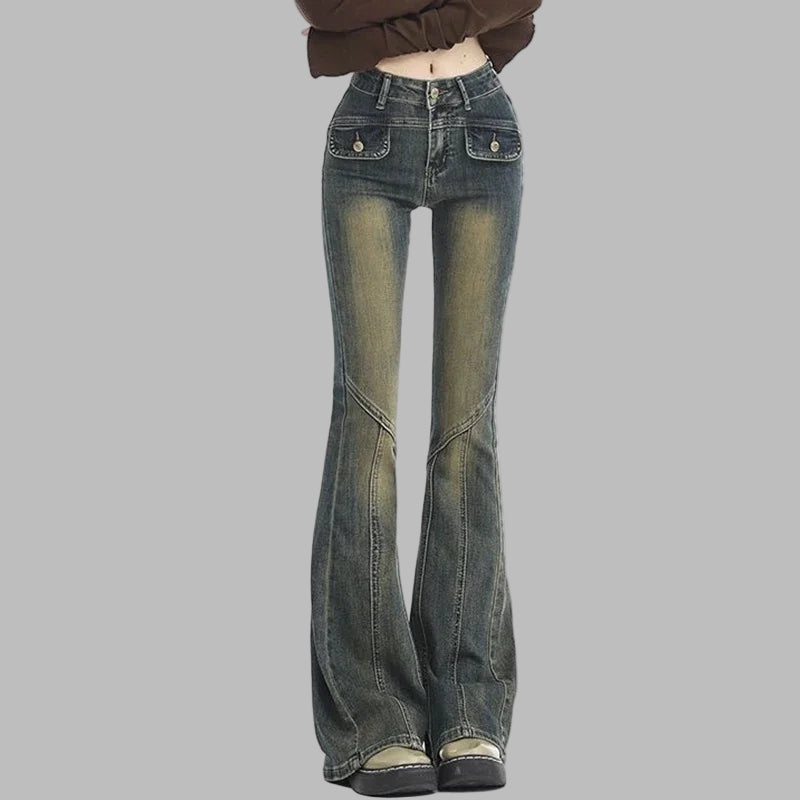 Calças de Ganga Cinzentas Rock Flare Vintage com Rasgões
