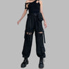Calças Pretas Góticas Punk Rock com Rasgos nos Joelhos
