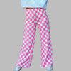 Calças Largas Punk Xadrez Rosa e Branco Grunge