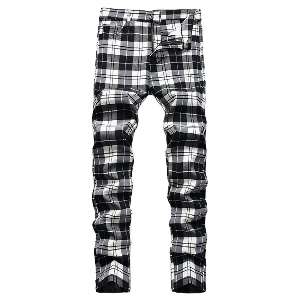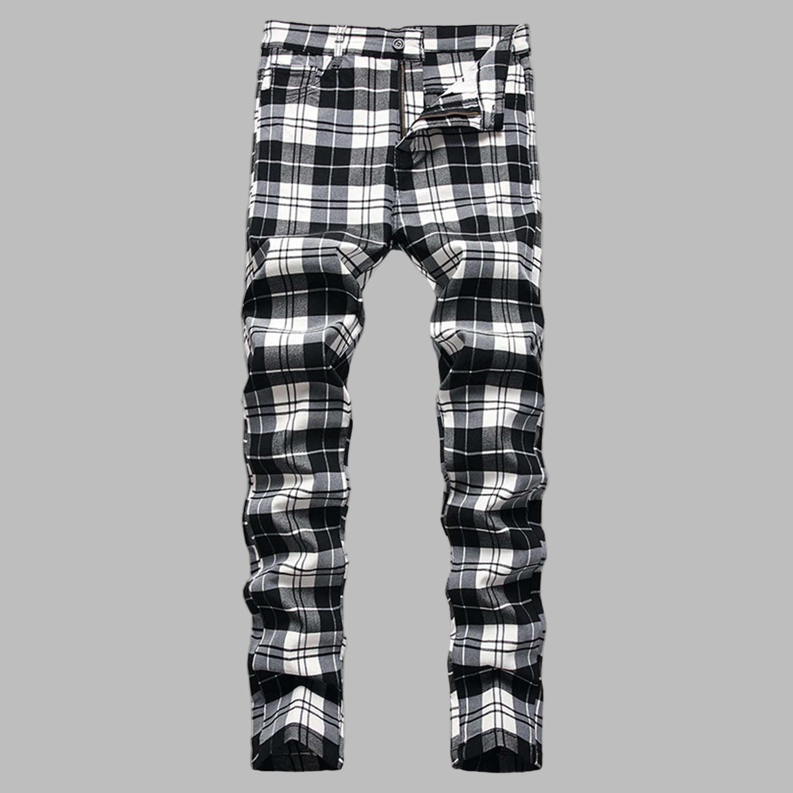 Calças Slim Punk Rock Xadrez Preto e Branco 4XL