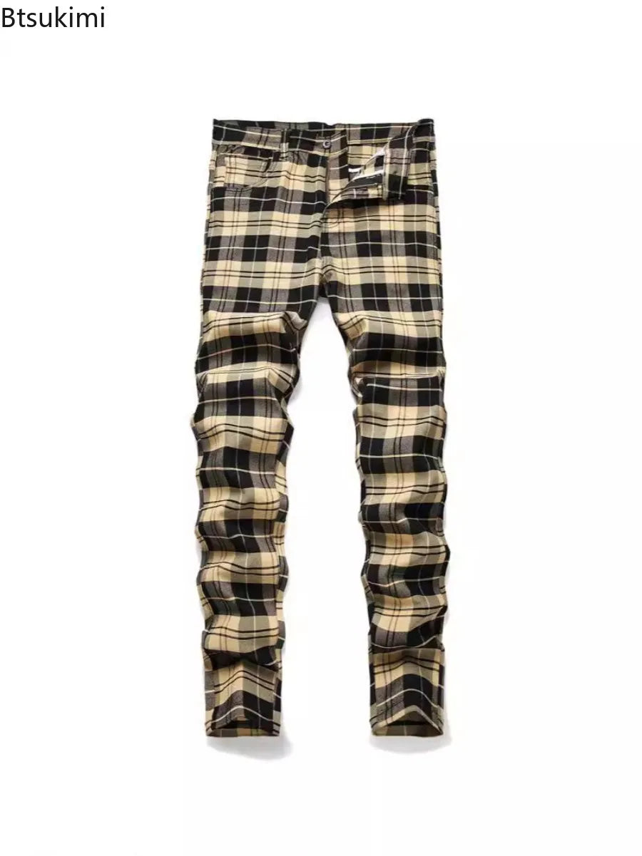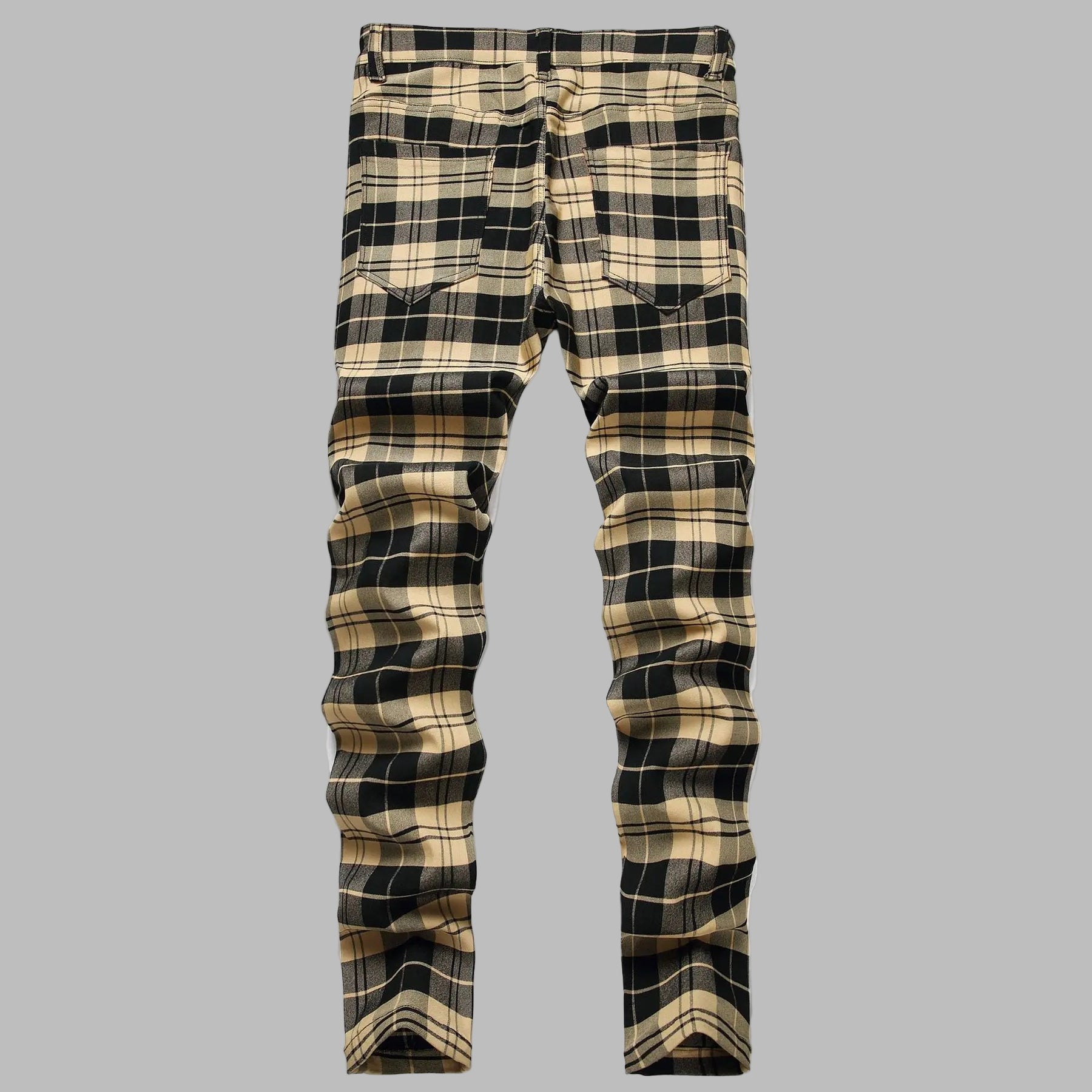 Calças Steampunk Xadrez Bege e Preto Grunge