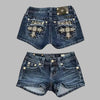 Calções de Ganga Curtos Rock Grunge com Cruzes Metálicas e Tachas