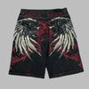 Calções Pretos Grunge Metal com Asas e Padrões Bordô