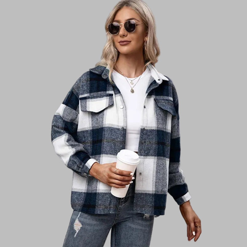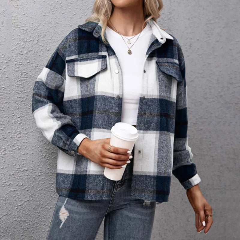 Camisa Cinzenta Grunge aos Quadrados com Bolsos