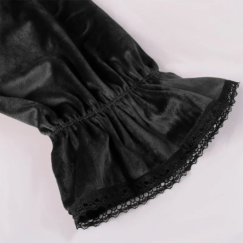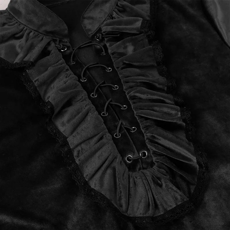 Camisa Elegante Preta com Jabô e Cordões Metal