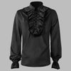 Camisa Elegante Preta Metal com Jabô e Cordões