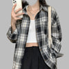 Camisa Flanela Oversize Xadrez Preto e Branco Punk Rock