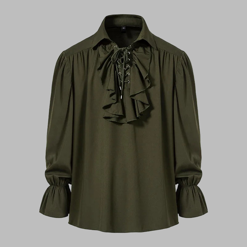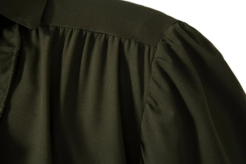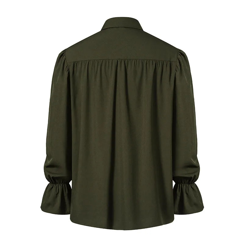 Camisa Rock Caqui com Jabô e Mangas Bufantes