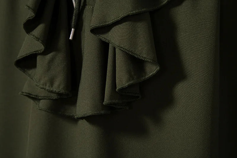Camisa Rock Caqui com Babados e Mangas Bufantes
