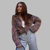 Camisa Oversize Xadrez Cinza e Laranja Solta
