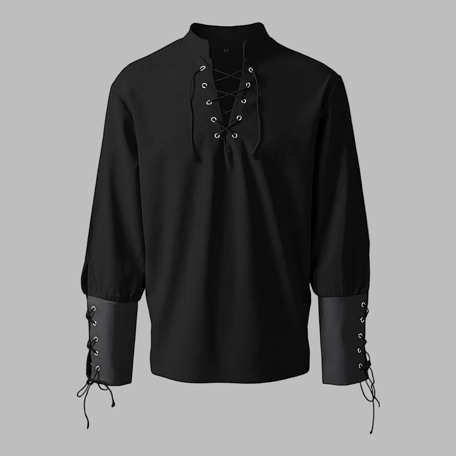 Camisa Preta de Metal com Cordões e Mangas Ver opcoes