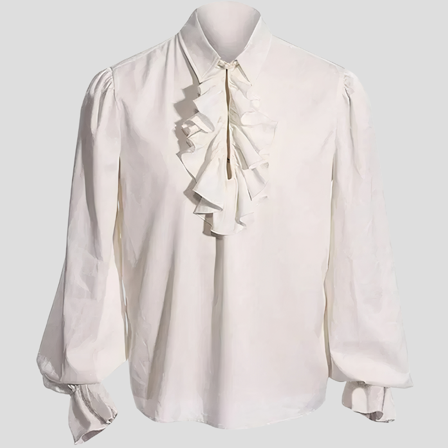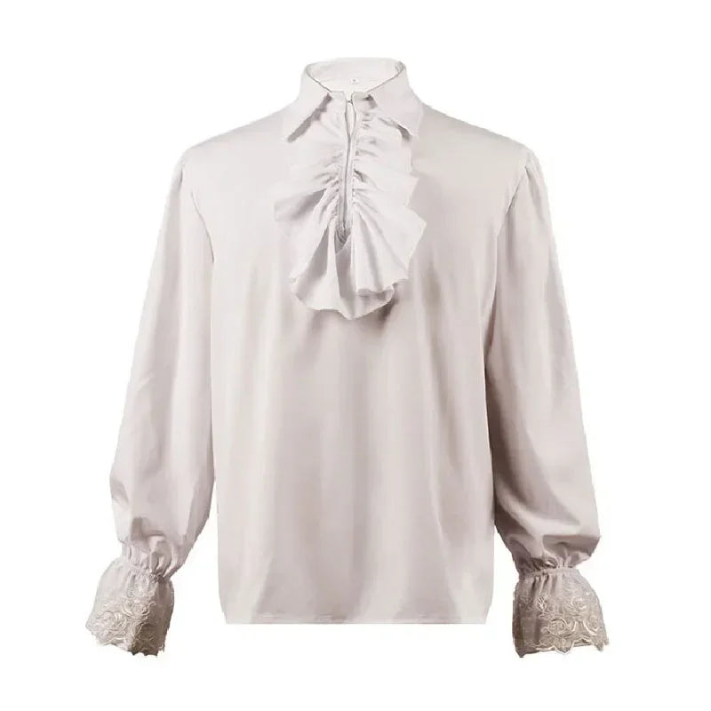 Camisa Rock Creme com Jabots e Mangas Bufantes