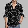 Camisa Rock Preta com Notas Musicais de Manga Comprida