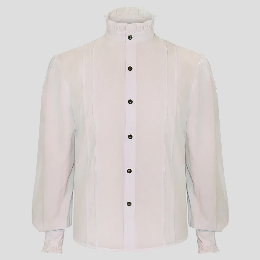 Biała Koszula Steampunk z Wysokim Kołnierzykiem Punk