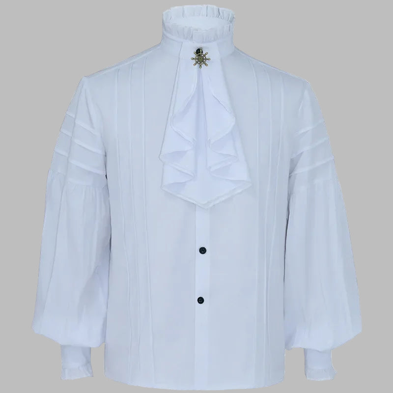 Camisa Branca Steampunk com Jabot e Mangas Bufantes