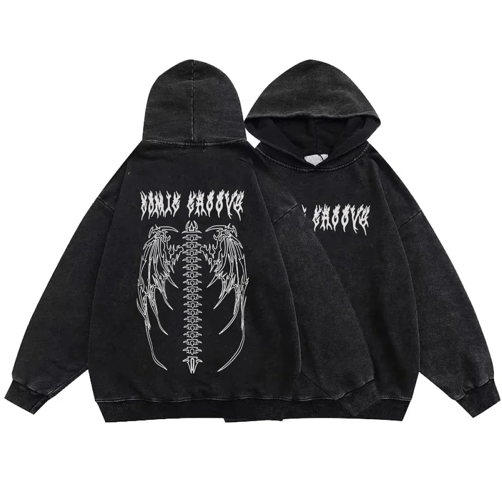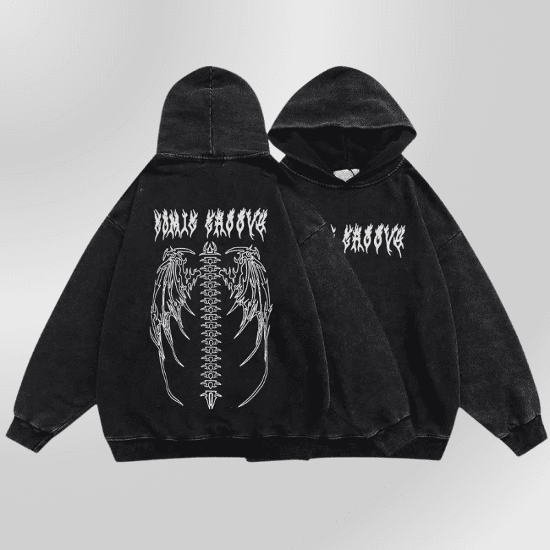 Camisola preta alternativa com capuz estilo grunge - Bones