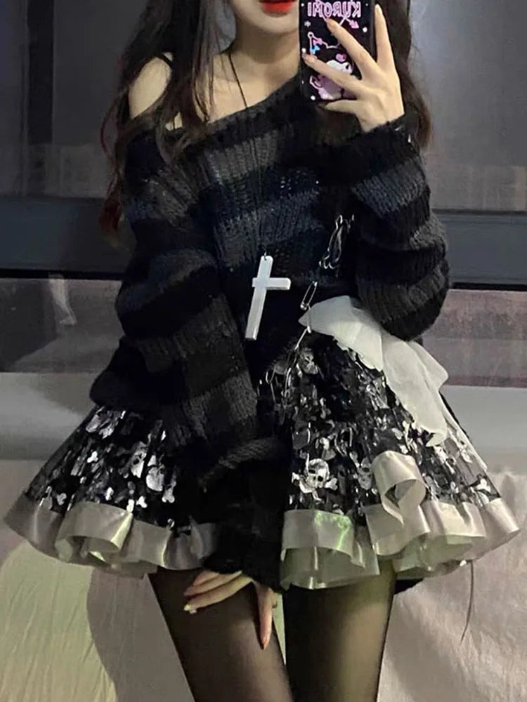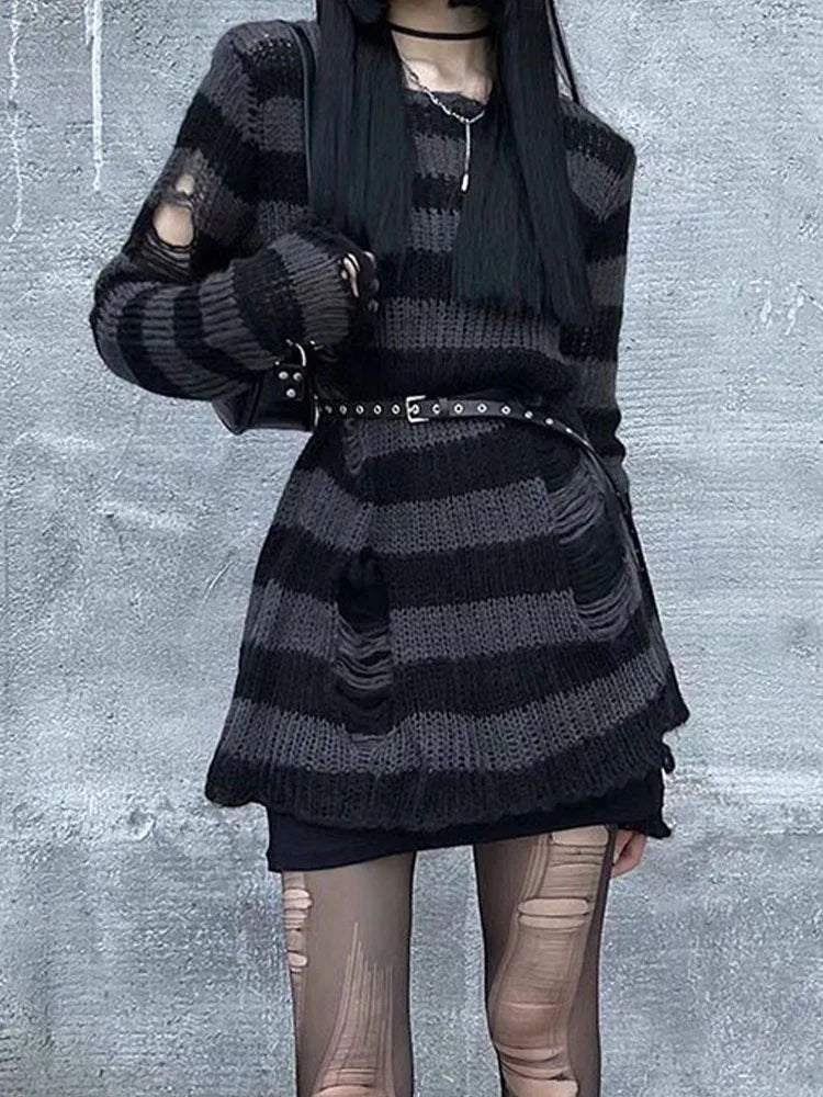 Camisola Punk Preta com Buracos e Cruz Oversized