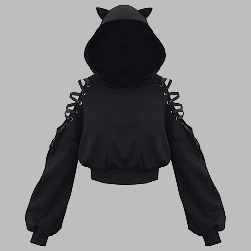 Camisola Punk Preta com Chifres e Cordões nos Ombros