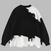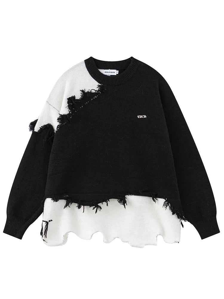 Camisola Punk Preta e Branca com Rasgões e Franjas