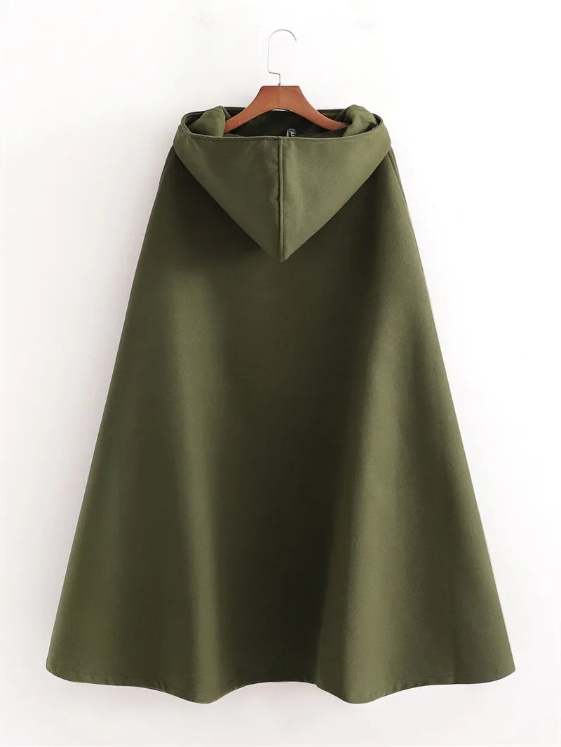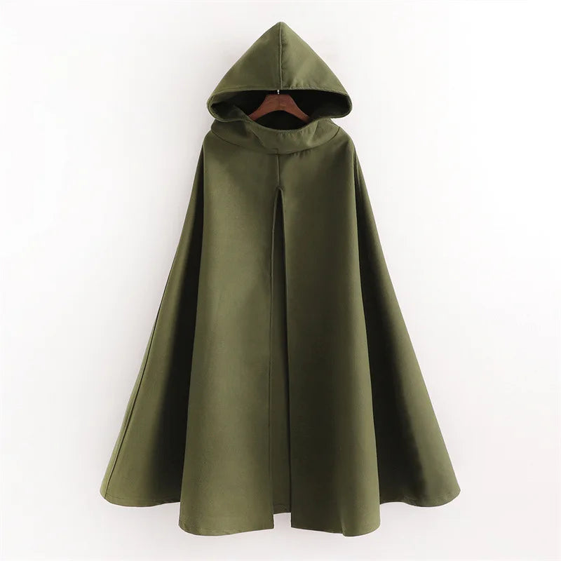 Capa Preta de Comprimento Médio com Capuz – Estilo Bruxa Feminino verde