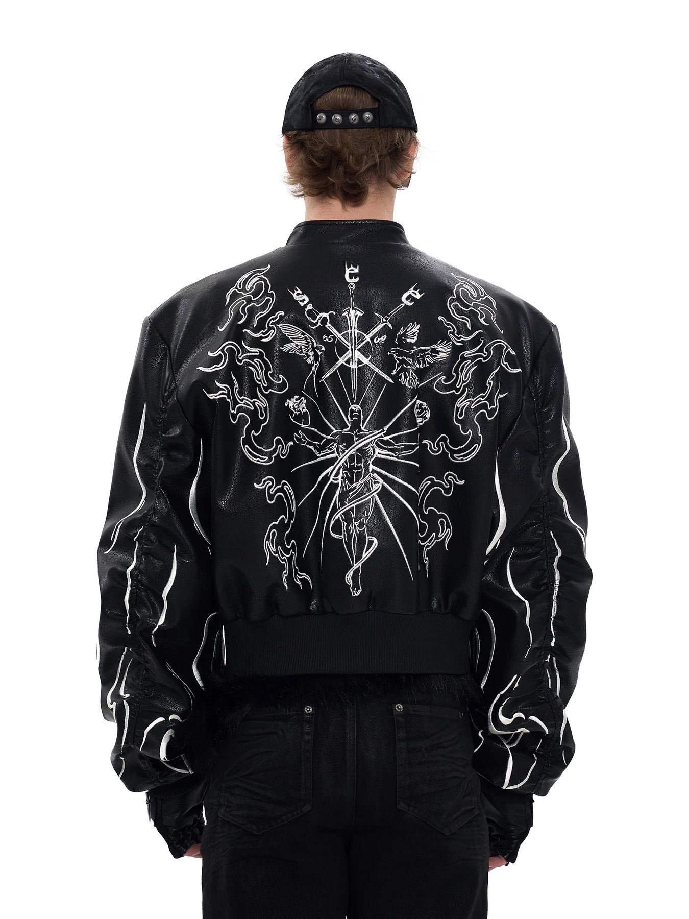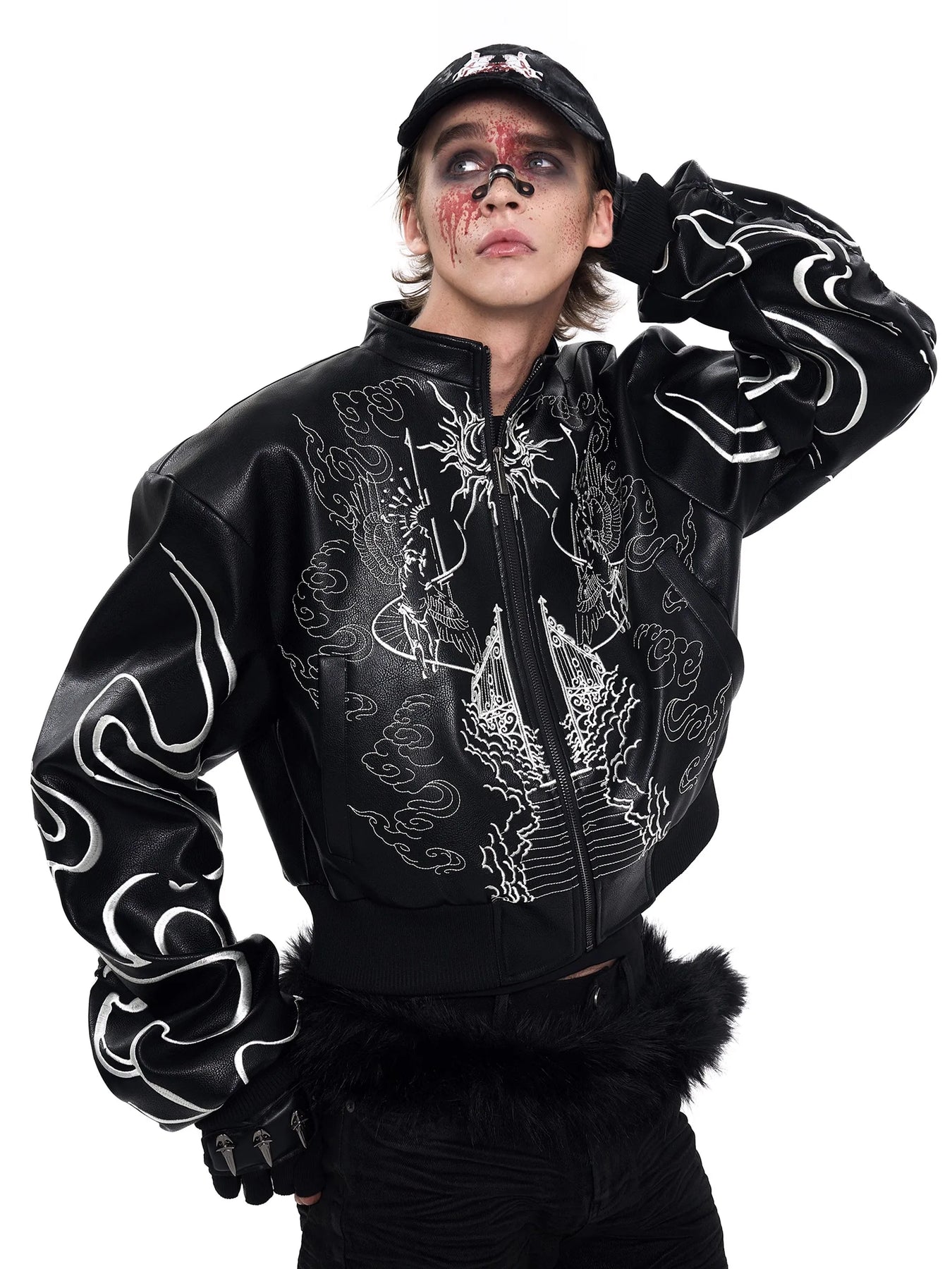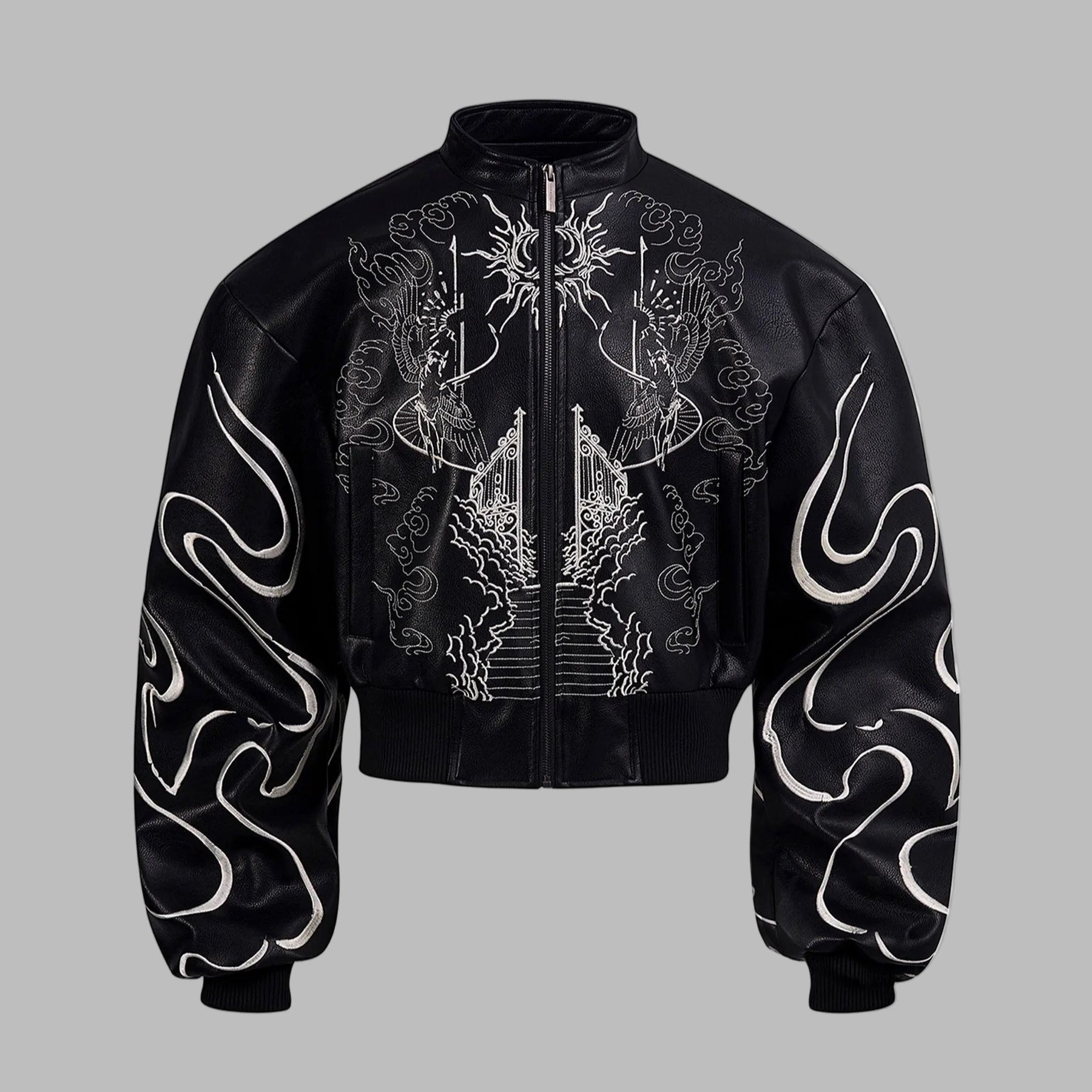 Casaco Bomber Preto Goth Metal com Bordado de Anjos e Céu