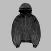 Casaco com capuz oversize preto full zip com chamas darkwear