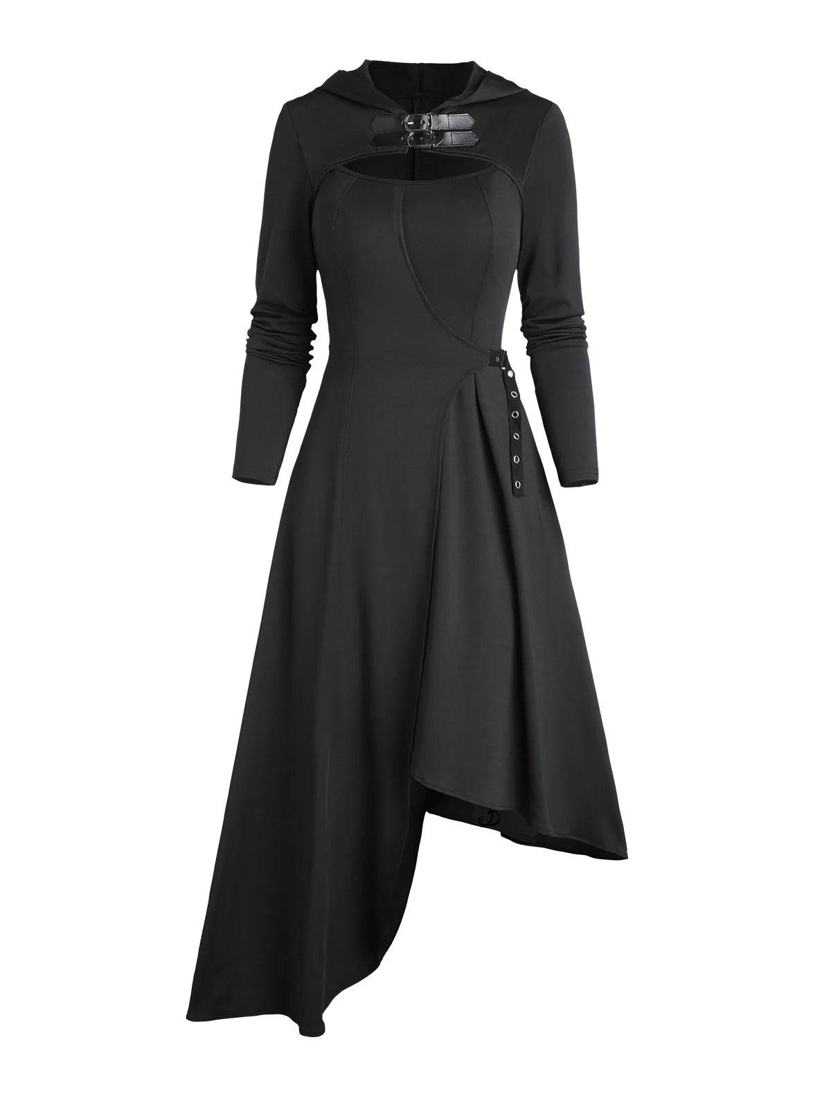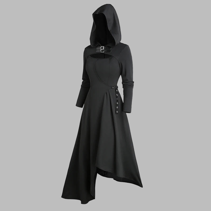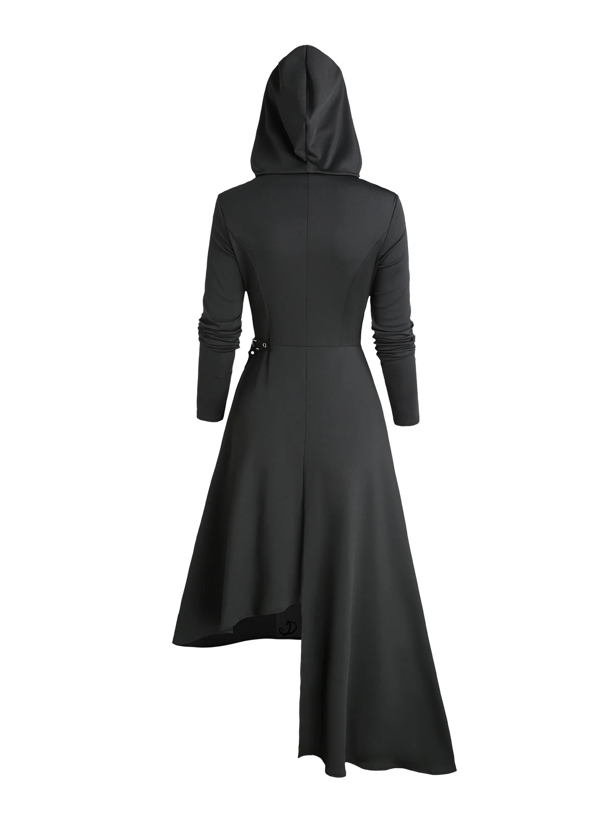 Casaco comprido preto com capuz e cinto assimétrico Ver opcoes