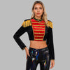 Casaco Curto Steampunk Militar com Franjas Preto e Vermelho