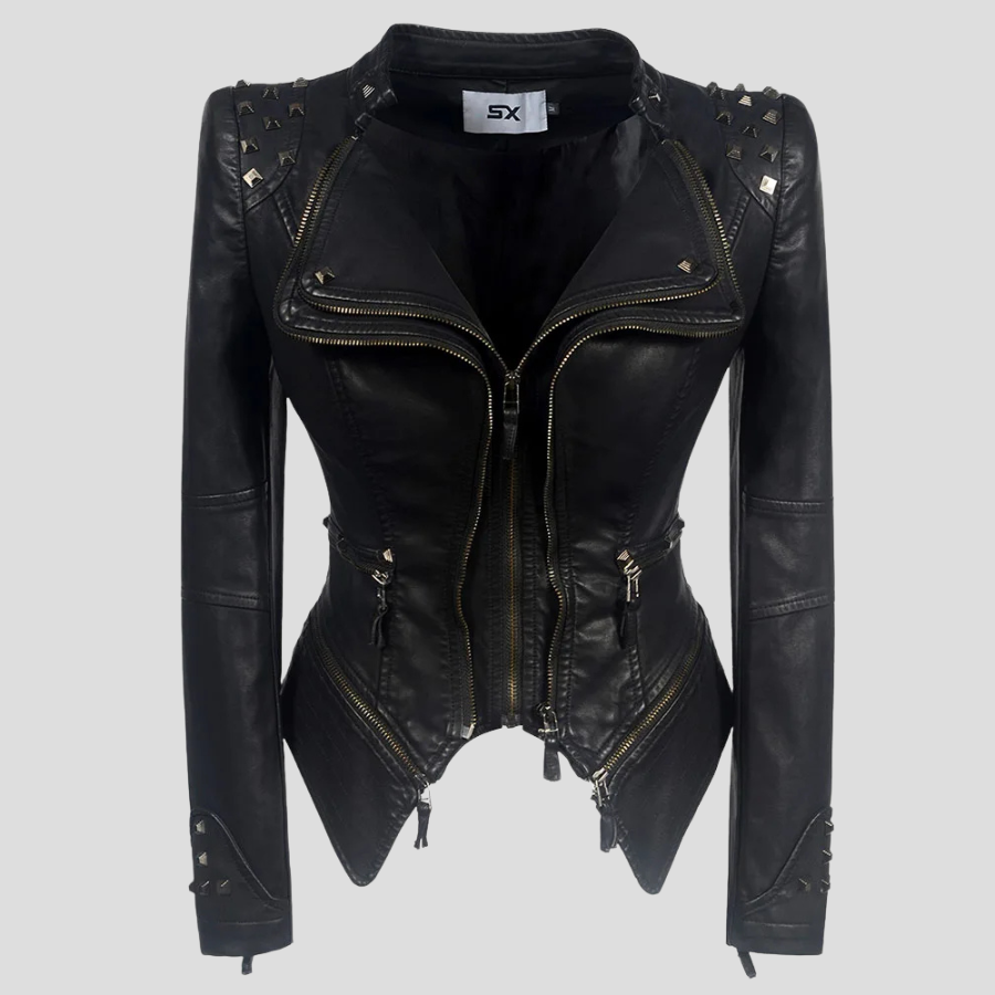 Casaco de Couro Preto com Tachas Punk Goth Metal