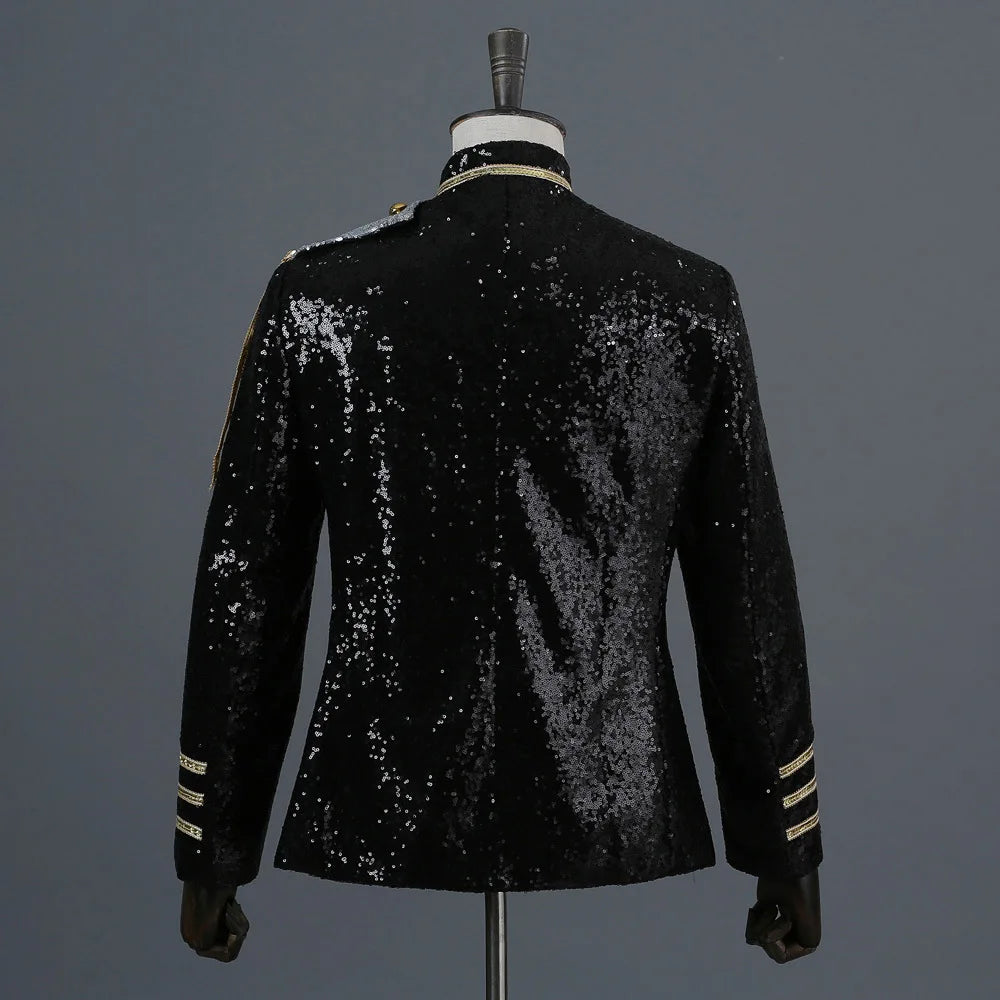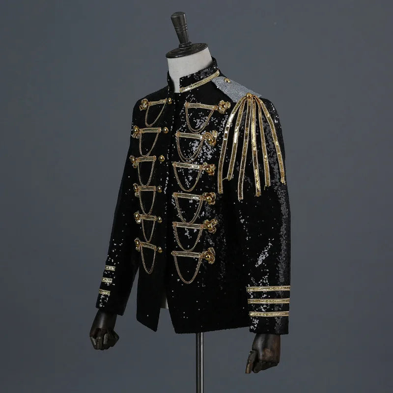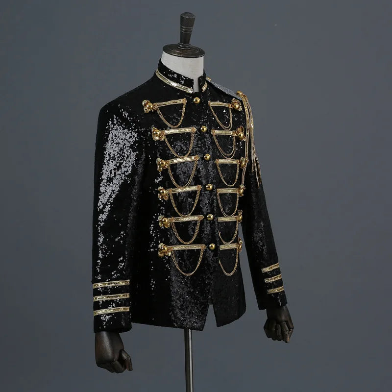 Casaco Preto de Lantejoulas com Correntes e Detalhes Dourados Metal