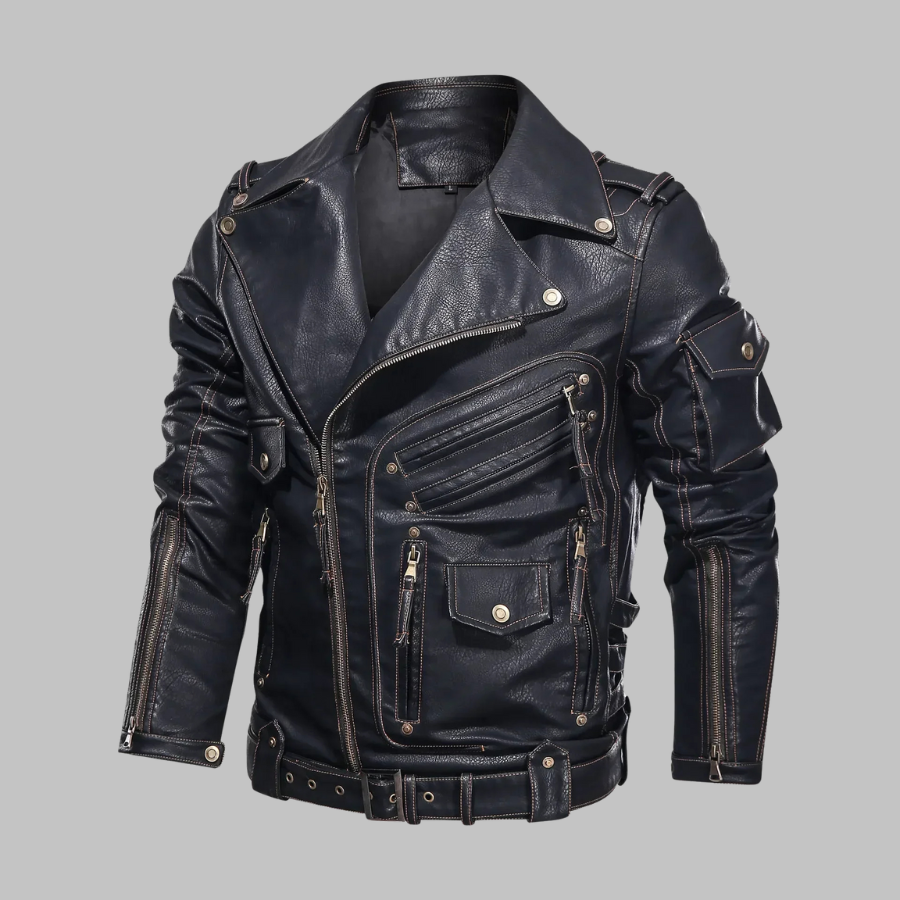 Casaco de moto preto em pele sintética de estilo rock para homem