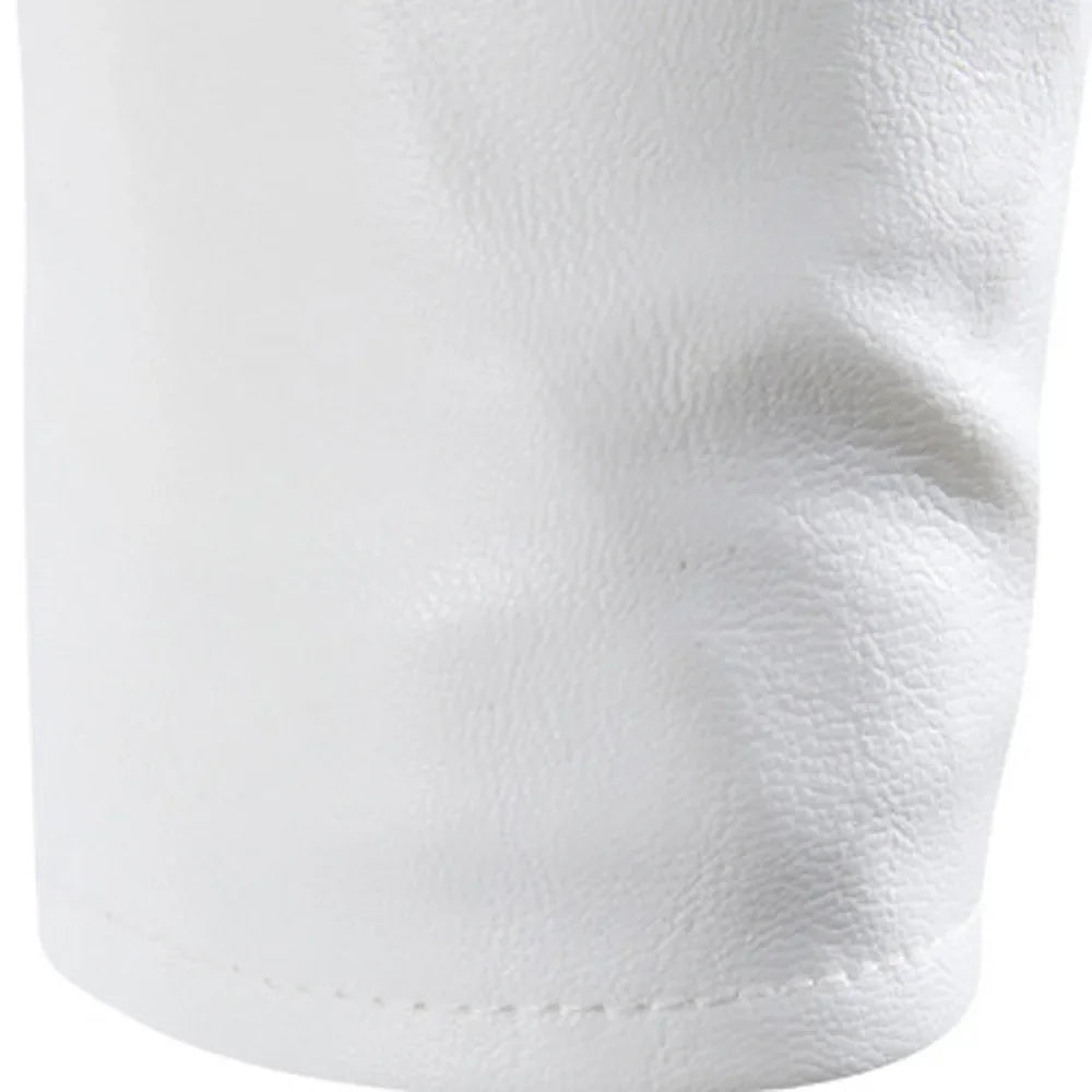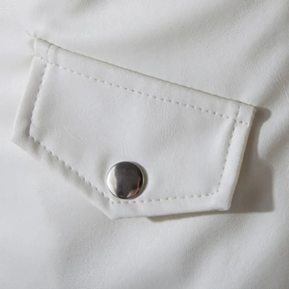 Casaco de Pele Branco Masculino de Motociclista com Cinto
