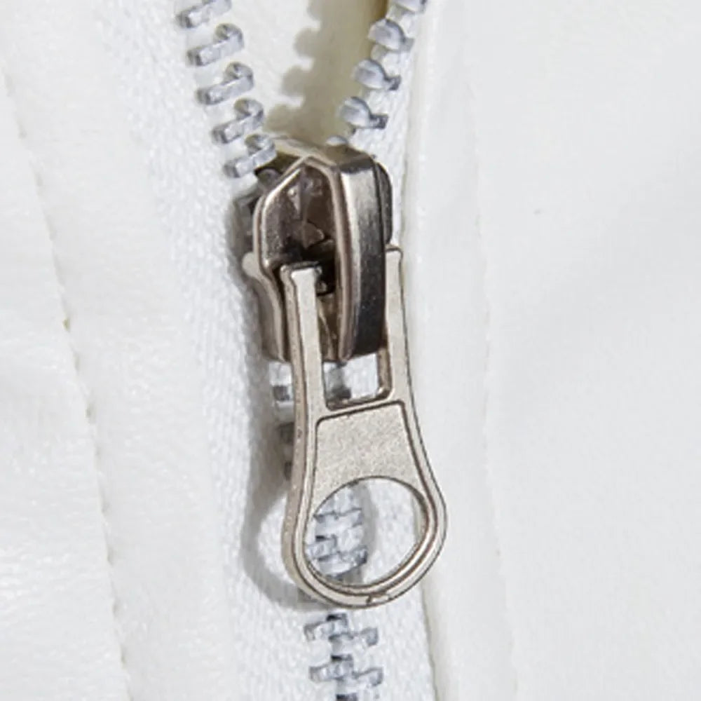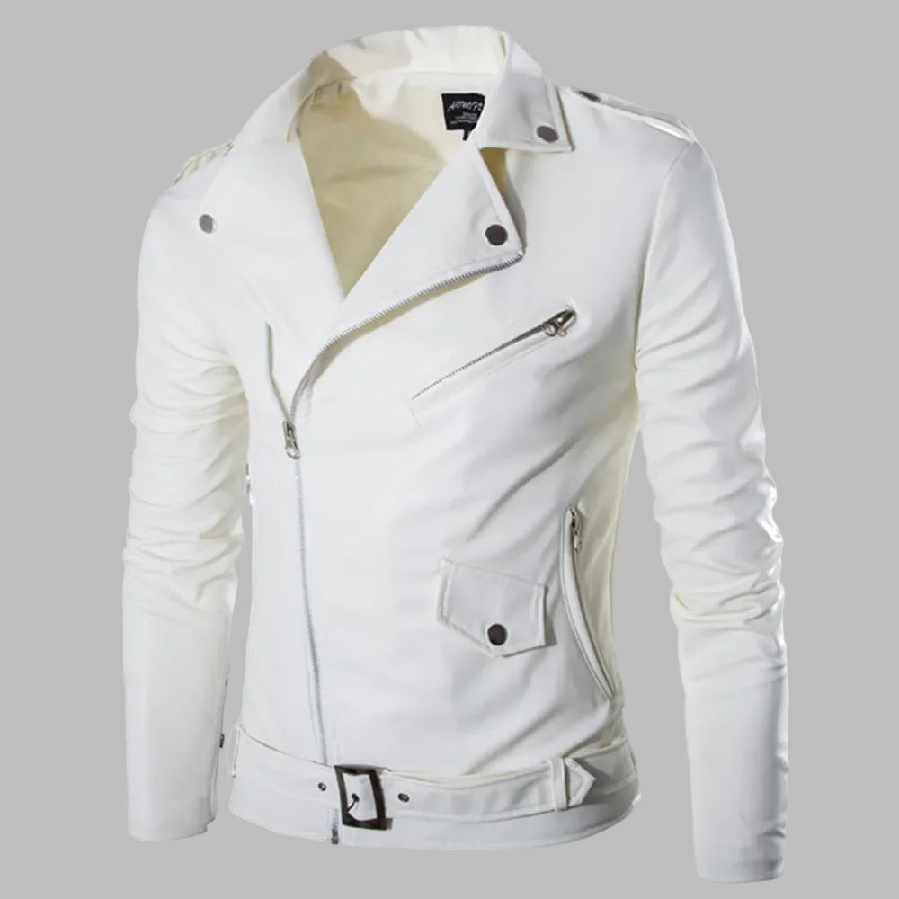 Casaco de Pele Branco de Homem para Motociclista com Cinto